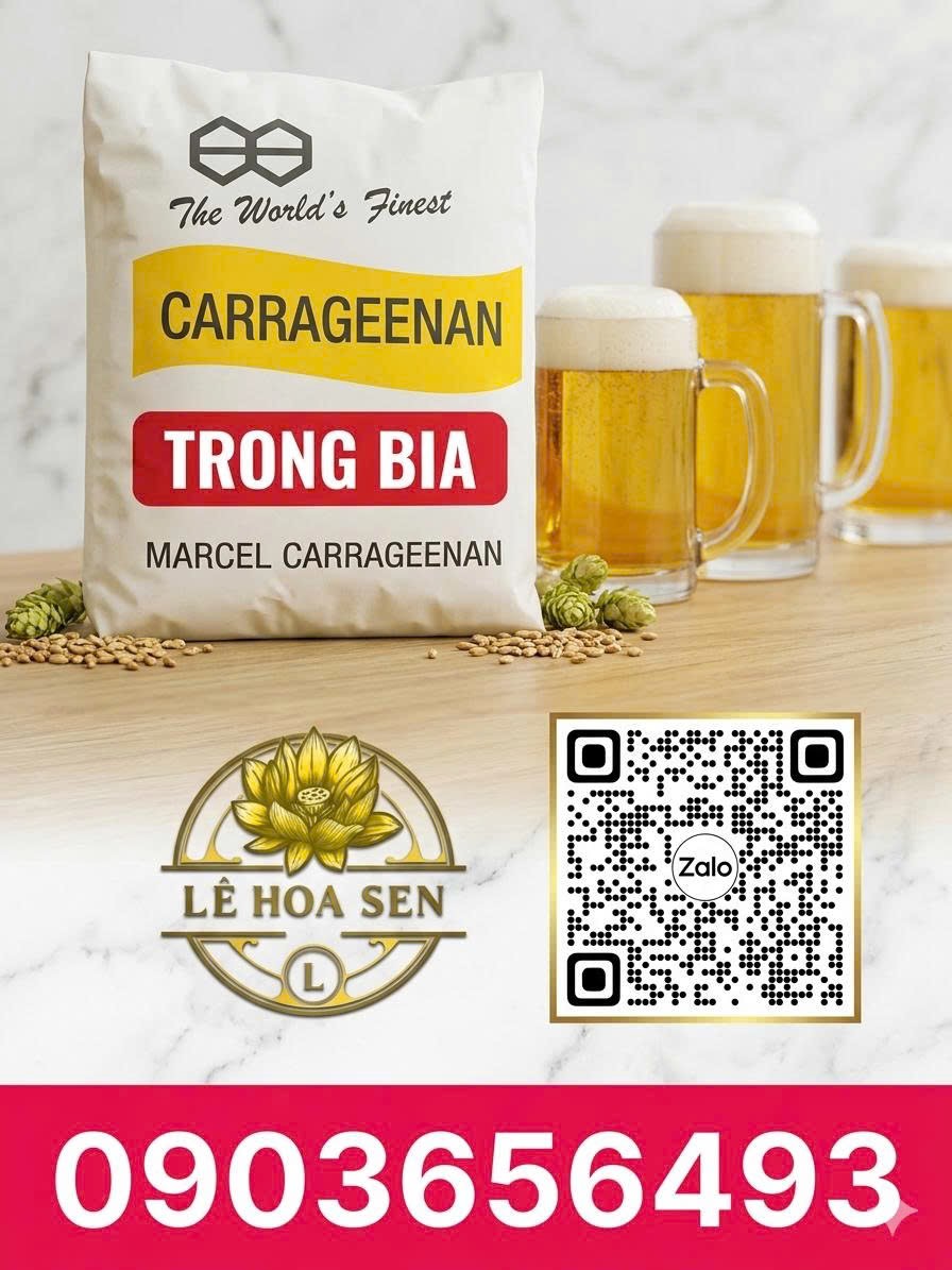 Carrageenan (thường ở dạng Irish Moss hoặc Kappa–Carrageenan) được sử dụng phổ biến trong ngành sản xuất bia như một chất trợ lắng – trợ lọc, giúp loại bỏ protein gây đục và nâng cao chất lượng thành phẩm.