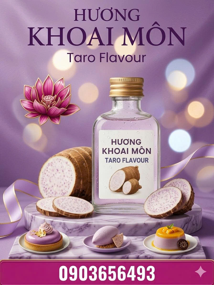 Hương khoai môn thực phẩm là dòng hương liệu được ưa chuộng trong ngành đồ uống và bánh kẹo nhờ mùi thơm béo nhẹ, đặc trưng của khoai môn. Sản phẩm giúp tạo nên hương vị hấp dẫn, dễ uống và phù hợp với thị hiếu người tiêu dùng.